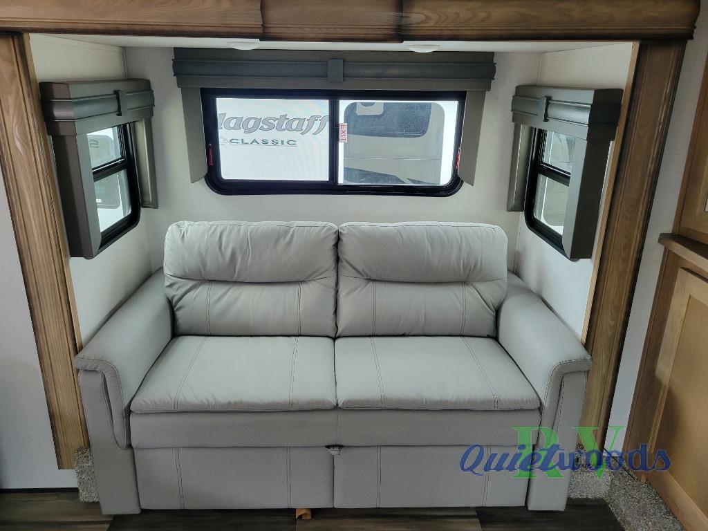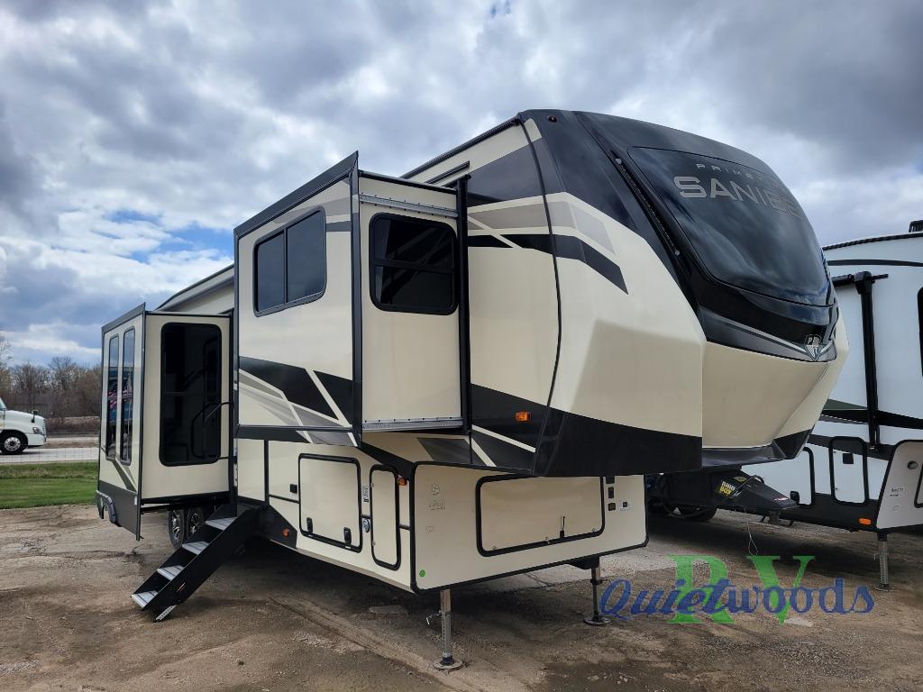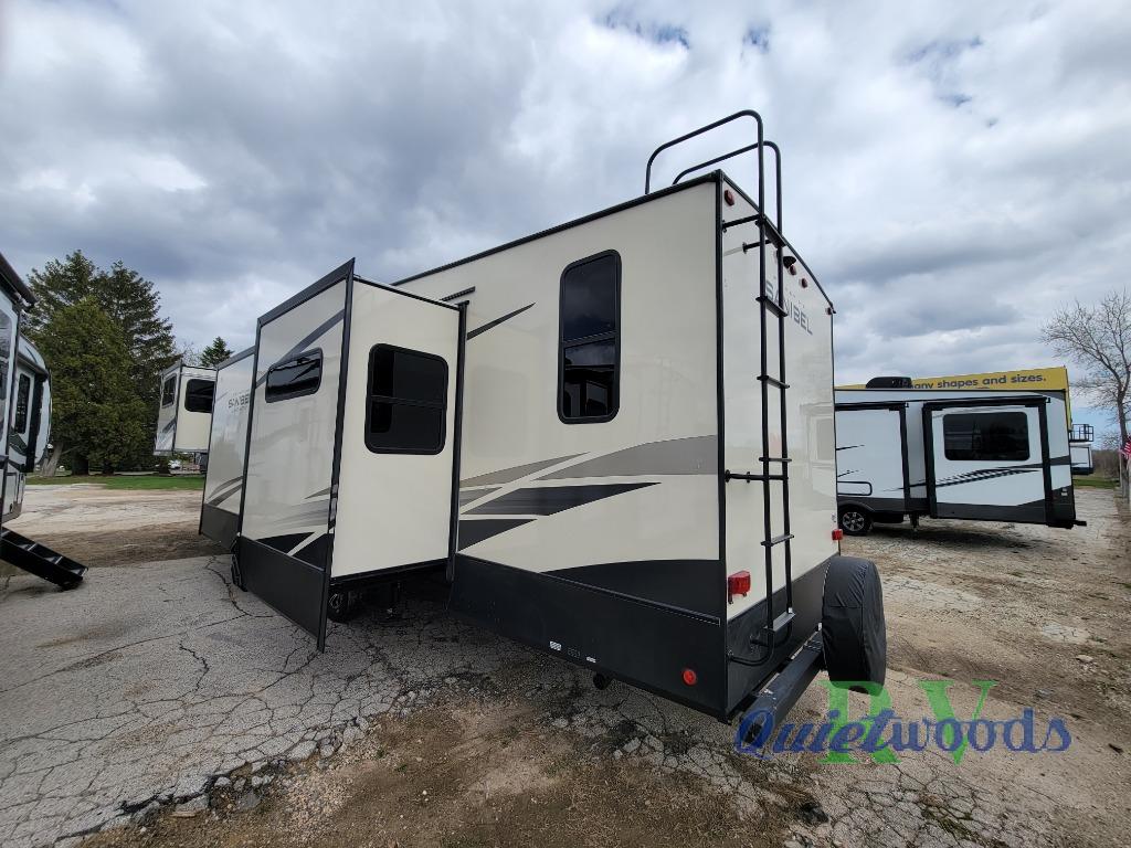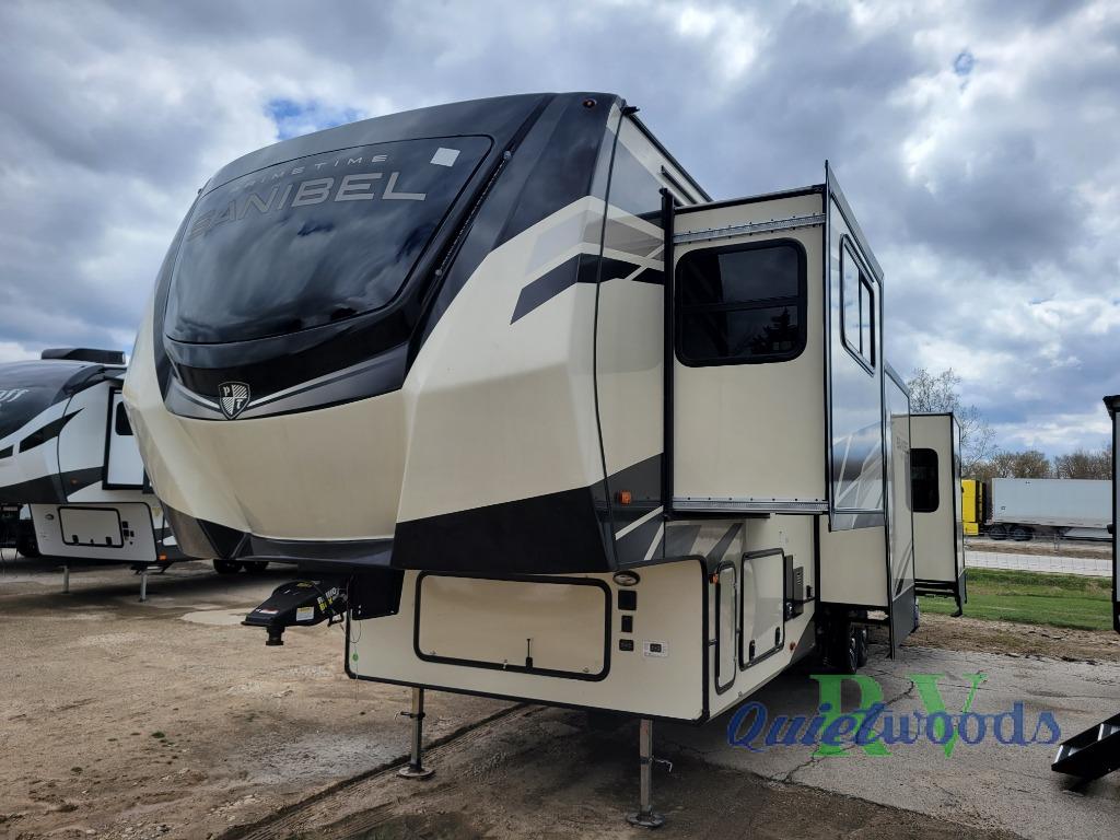 More luxury and more value is what you will find in each one of these Prime Time RV Sanibel fifth wheels! The Extreme Thermal package allows you to extend your camping season by including heated, enclosed water lines, an enclosed underbelly, a heated pass-through storage, and a heated universal docking center. You can keep the party going with the exterior speakers, the coax TV connection and a 110V outlet, plus USB ports in the basement storage. Each model includes an electric awning with LED lights, DOT approved deep tint safety glass, and a "E-Z FLEX" rubberized suspension to provide smooth towing on tougher roads. Inside, you will enjoy shaker style interior doors, a Furrion residential cooktop and oven, roller shades throughout, and "Atrium" dinette windows to let sunlight in for an inviting space. Come find the model that fits your needs today!