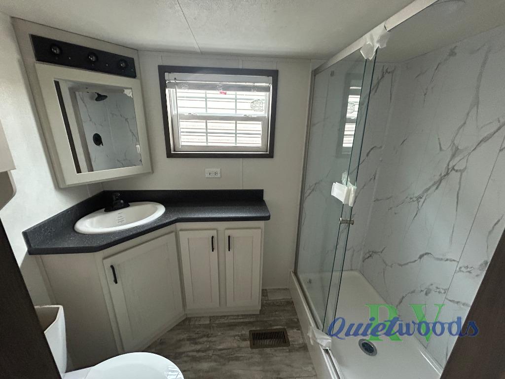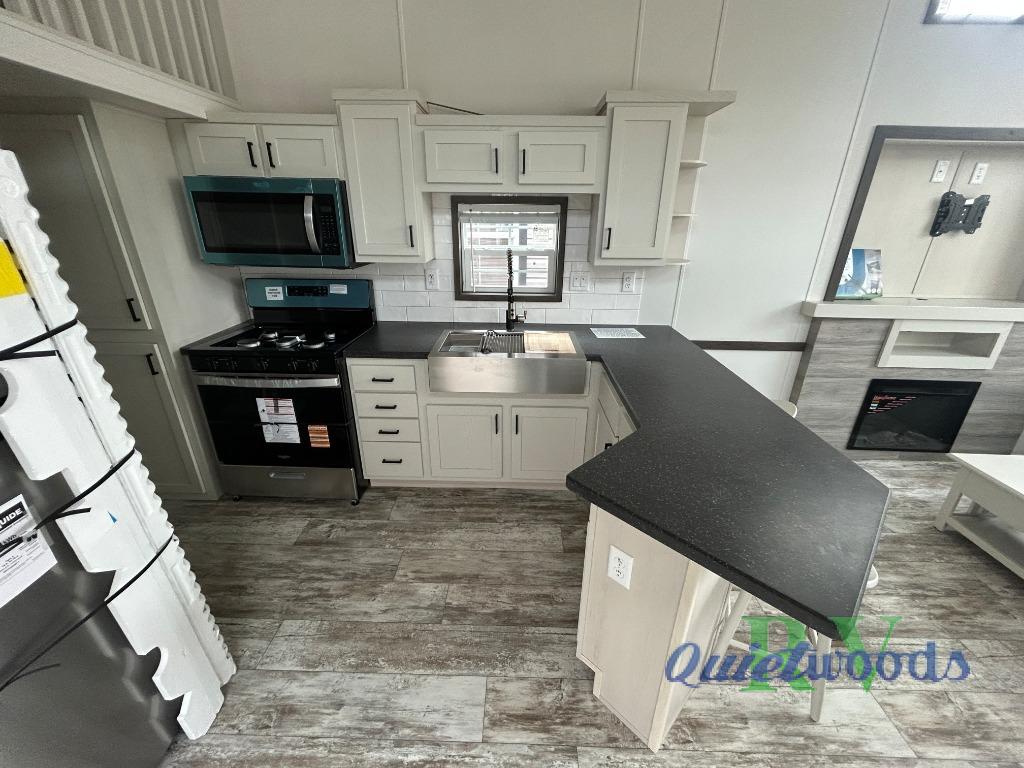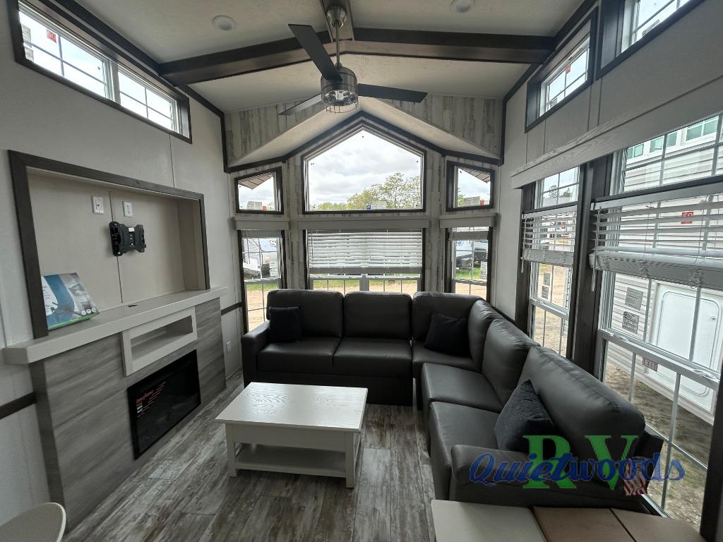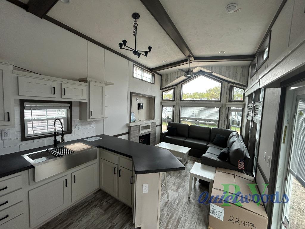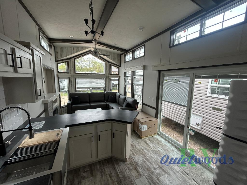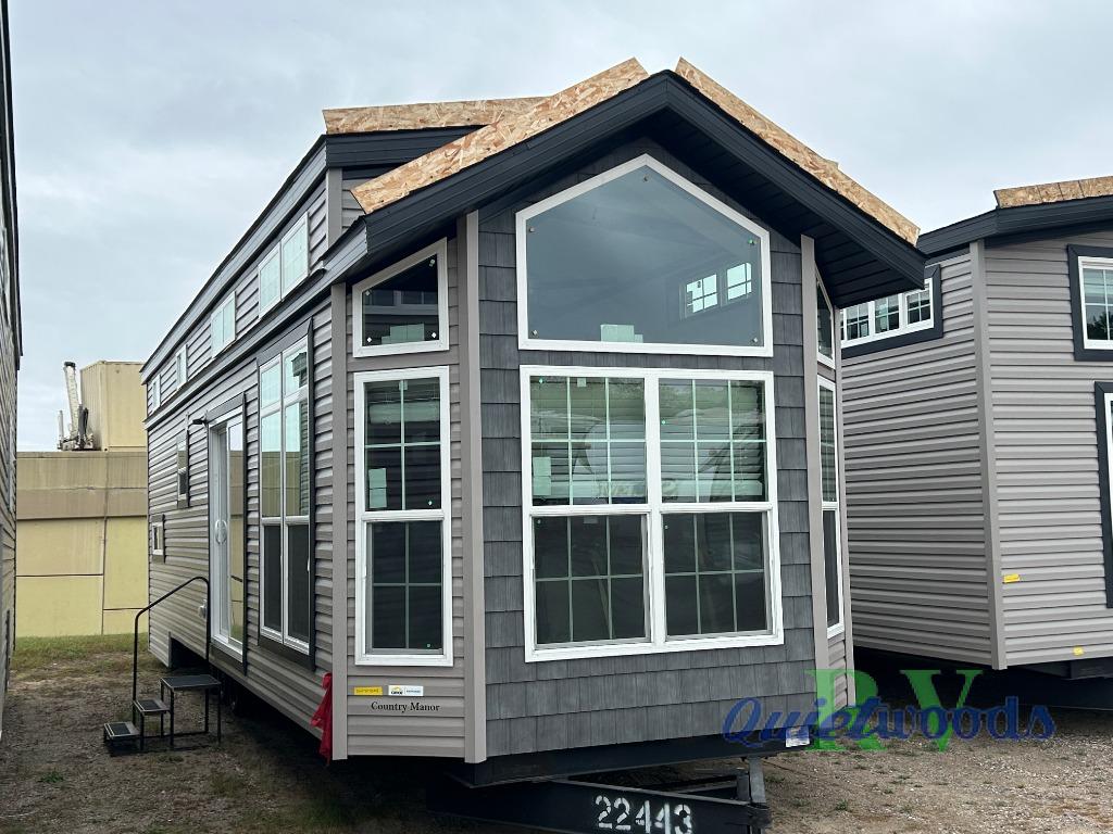 With any Country Manor park model by Fairmont you will enjoy years of use and memories thanks to the solid construction materials, such as an Owens Corning architectural shingled roof, a woven shepweave underbelly, a HomeGuard exterior weather house wrap wind barrier, and more! The Kinro windows will allow plenty of natural light in, and the residential crown molding will give that touch of luxury. Each model includes stainless steel Whirlpool appliances, high pressure dual laminated countertops and backsplash, and European style hidden cabinet hinges. These models also feature 1/2" residential textured drywall cathedral ceilings for better insulation and sound proofing, and the three decor choices will allow you to customize the interior to your liking.