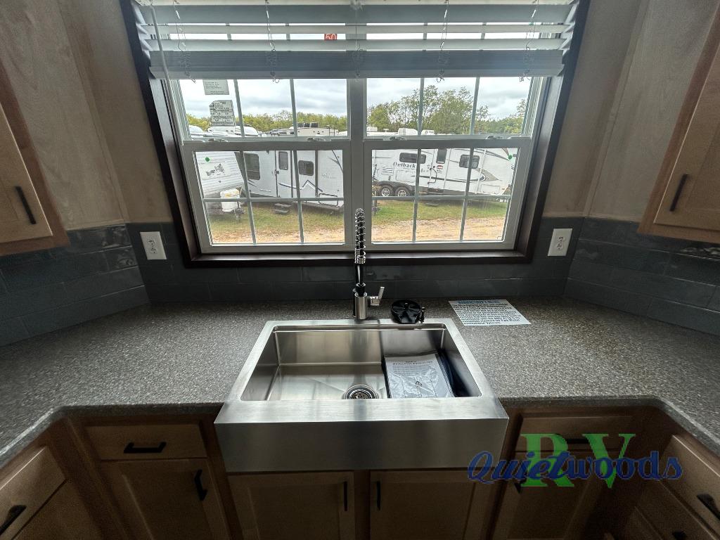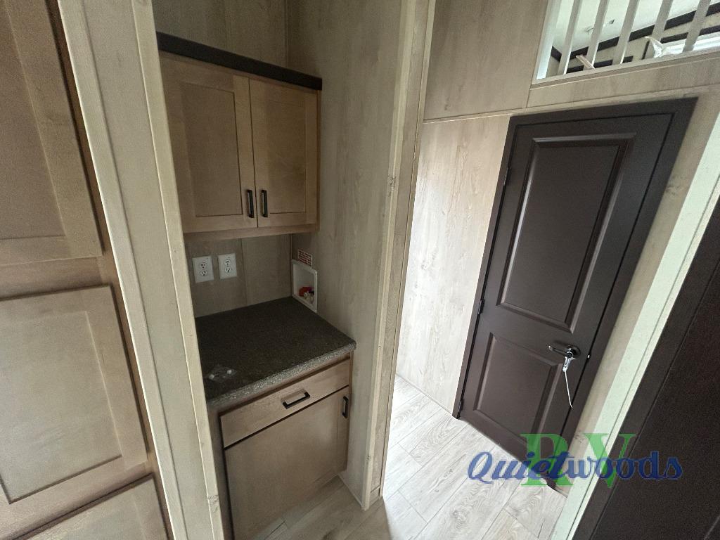 Head out on adventure in this spacious park model. You will love the front kitchen with tons of counter space and a four burner cooktop to prepare meals at. There is an entertainment center where you can add a TV, and the kitchen island will provide more counter space. This model includes a pantry to store dry goods and snacks, a chalkboard the little ones are sure to love, and a space to add an optional washer and dryer prep if you choose. Don't let this model pass you by!
