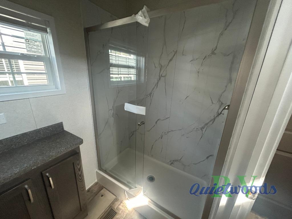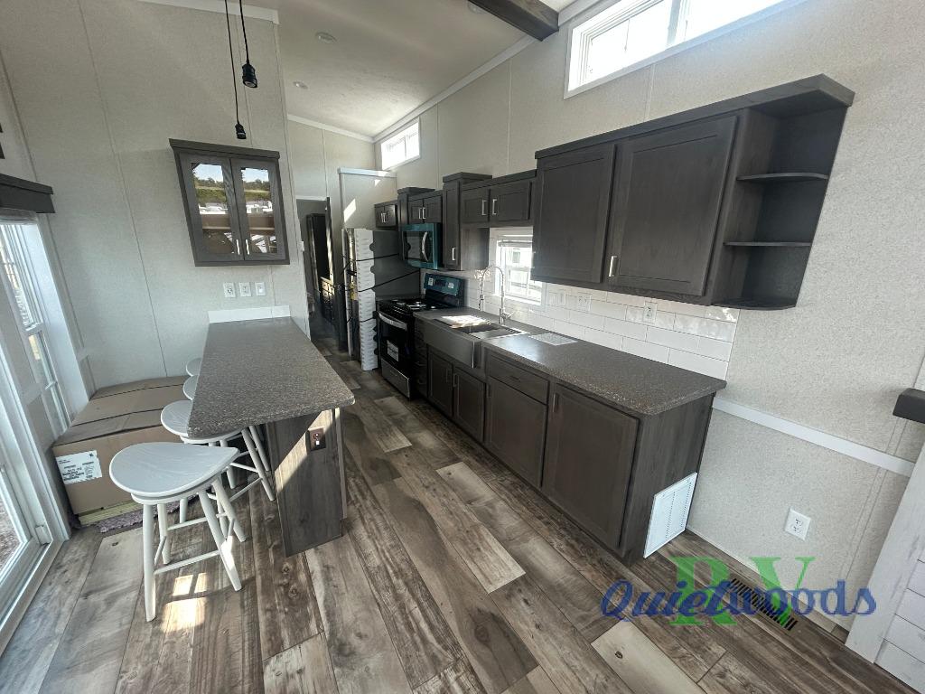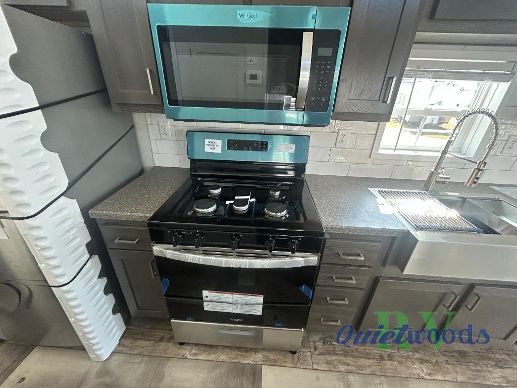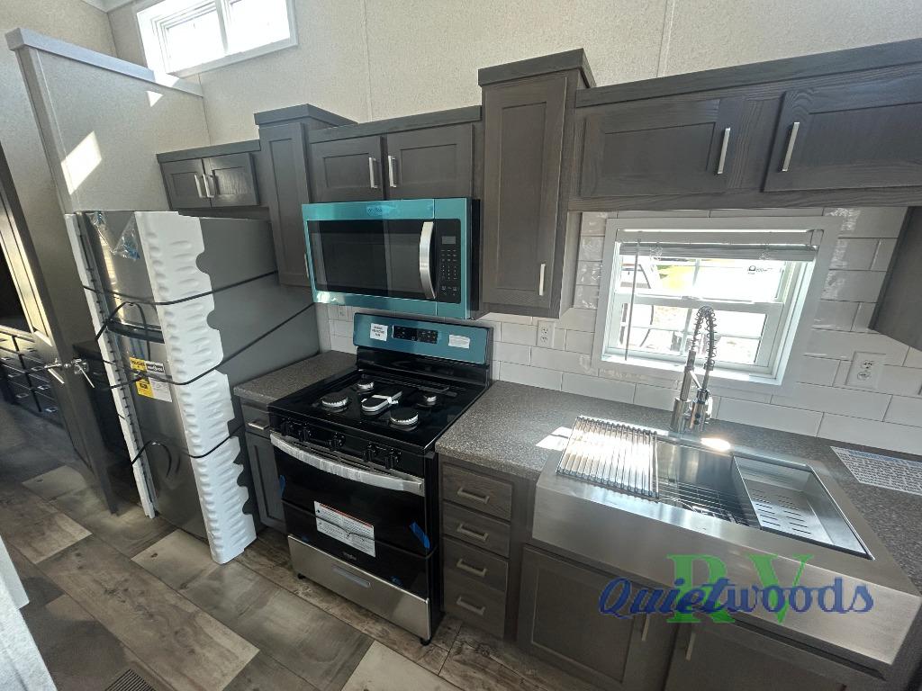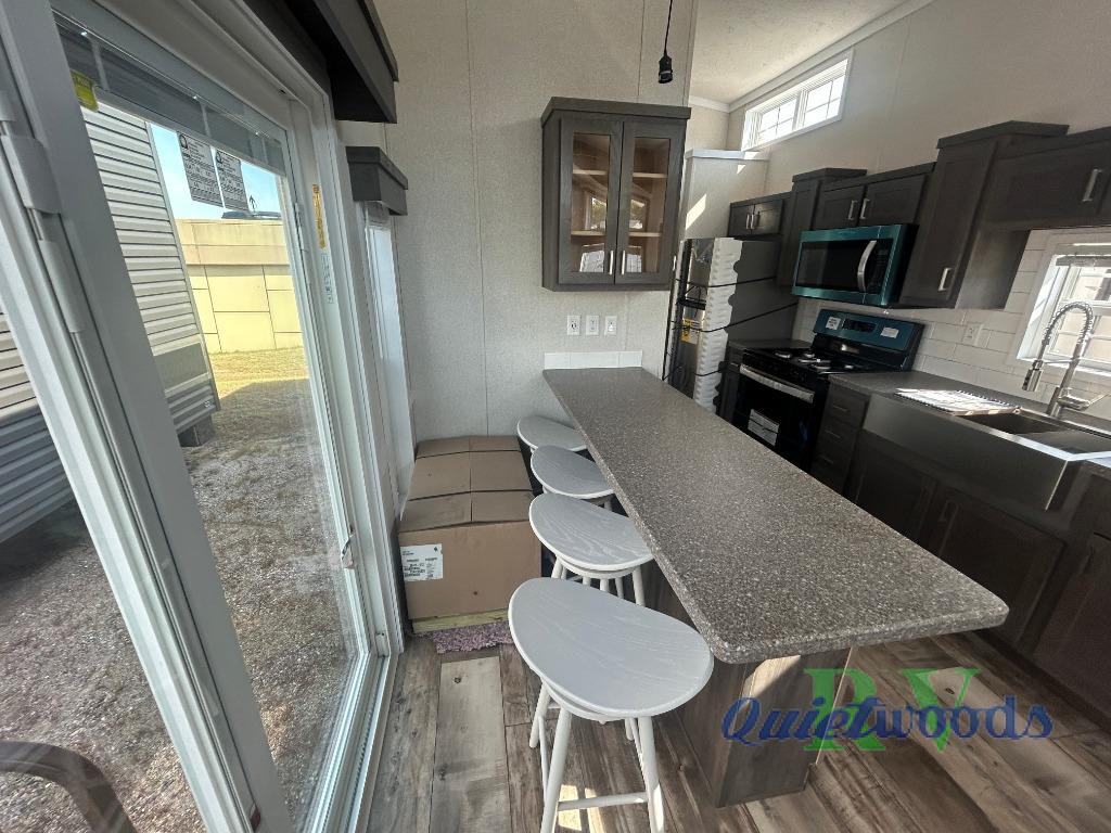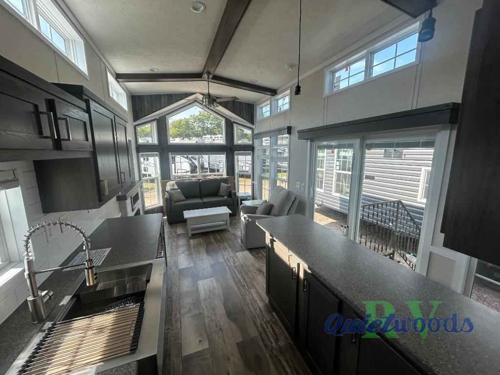 With any Country Manor park model by Fairmont you will enjoy years of use and memories thanks to the solid construction materials, such as an Owens Corning architectural shingled roof, a woven shepweave underbelly, a HomeGuard exterior weather house wrap wind barrier, and more! The Kinro windows will allow plenty of natural light in, and the residential crown molding will give that touch of luxury. Each model includes stainless steel Whirlpool appliances, high pressure dual laminated countertops and backsplash, and European style hidden cabinet hinges. These models also feature 1/2" residential textured drywall cathedral ceilings for better insulation and sound proofing, and the three decor choices will allow you to customize the interior to your liking.