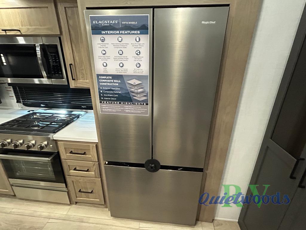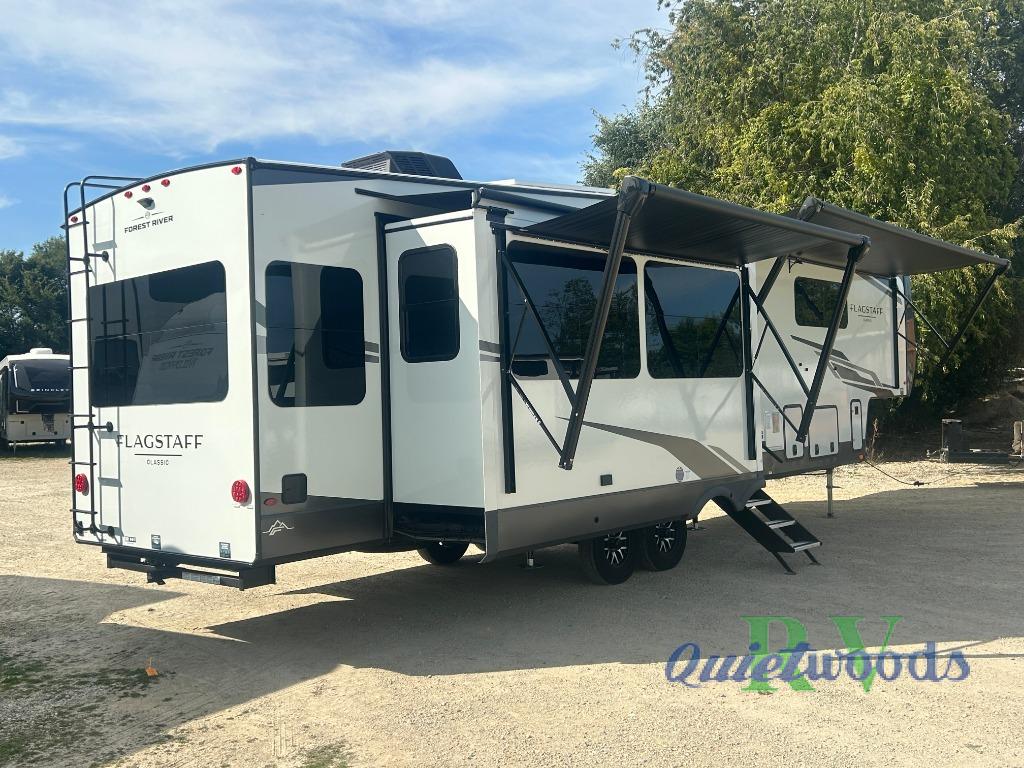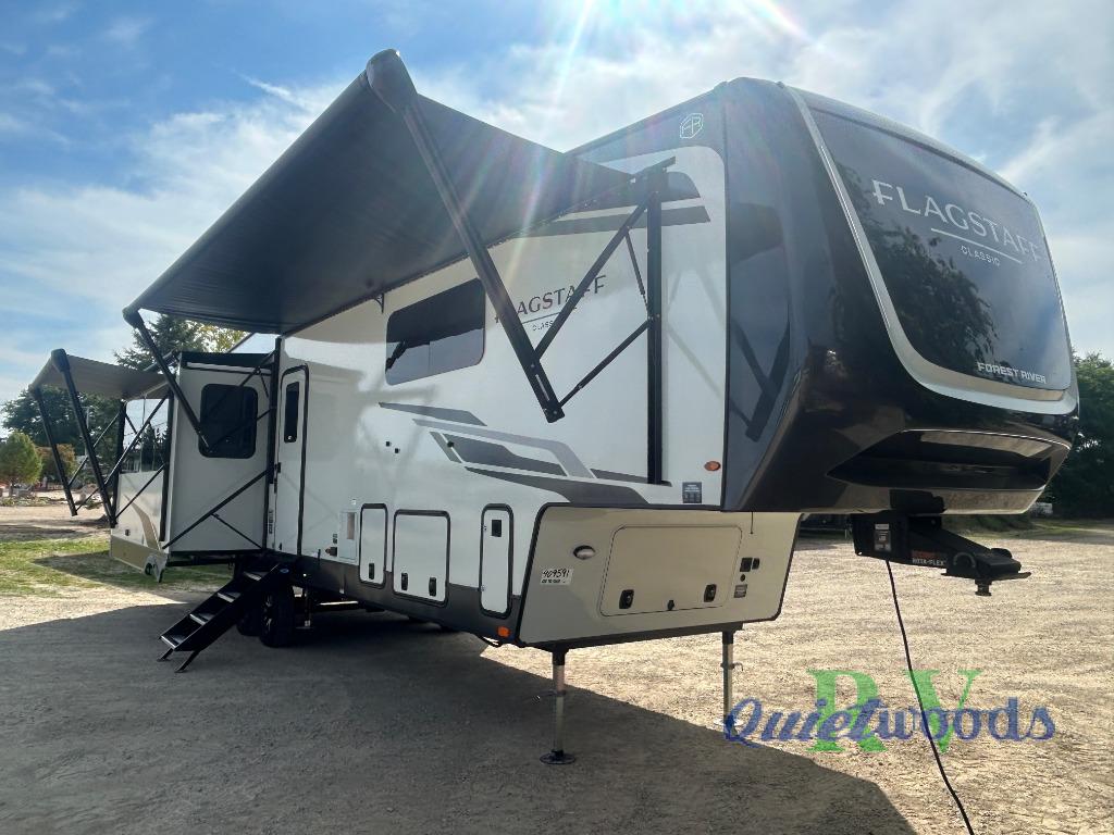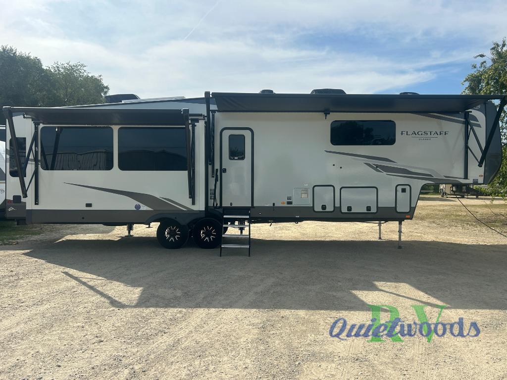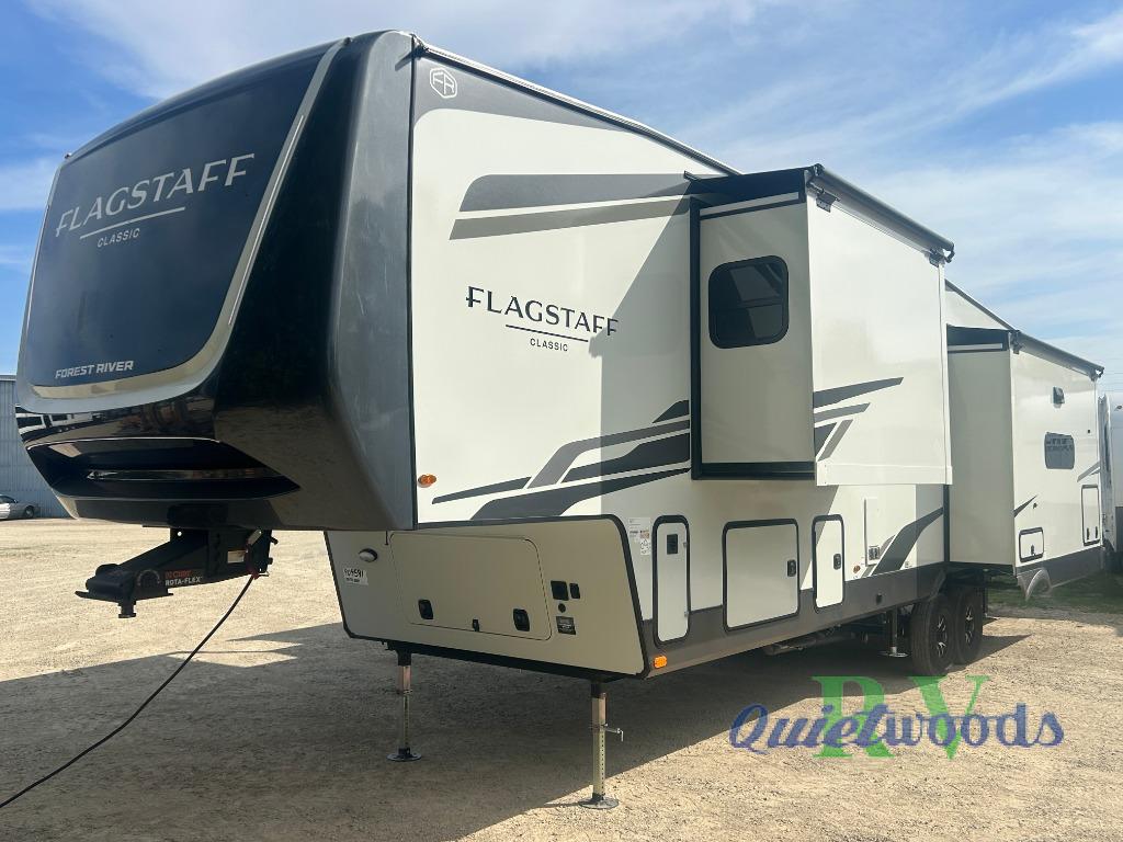 Each one of these Forest River Flagstaff Classic fifth wheels or travel trailers will be your home on wheels! Their quality craftsmanship and attention to detail shines through the enclosed underbelly, the fully laminated walkable roof, and six-sided full-aluminum frame. Towing your unit will be easy with the Goodyear Endurance tires plus RoadTech tire pressure monitoring. Additional exterior features include a 200W solar panel, slam baggage doors, a Key-Alike lock system, and double 30 lb. LP tanks to name a few conveniences. Head inside to find a residential style gas range, solid surface kitchen and bath countertops, soft close hidden cabinet hinges, and more comforts!