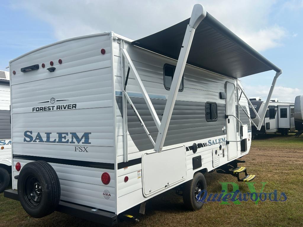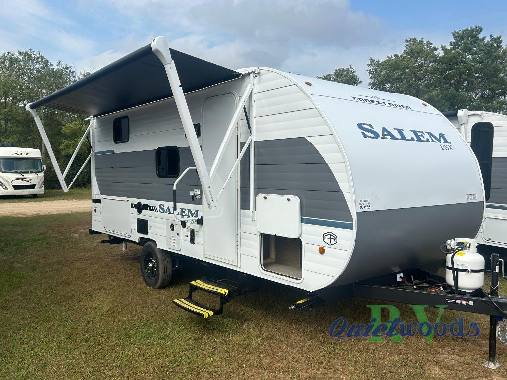 The Forest River Salem FSX travel trailers and toy hauler travel trailers are ultra comfortable and lightweight, perfect for first time or seasoned campers alike! You will love how easy it will be to relax with residential features that will make your space feel just like home, and the durable construction means you can enjoy your RV for years to come. There are a wide variety of floorplans to choose from, including couple's trailers, bunk models, and toy haulers, all with full bath and kitchen amenities and plenty of storage for all your gear!