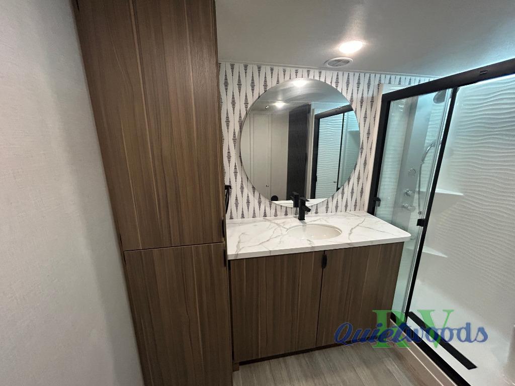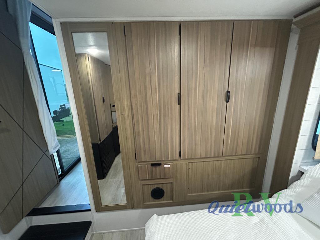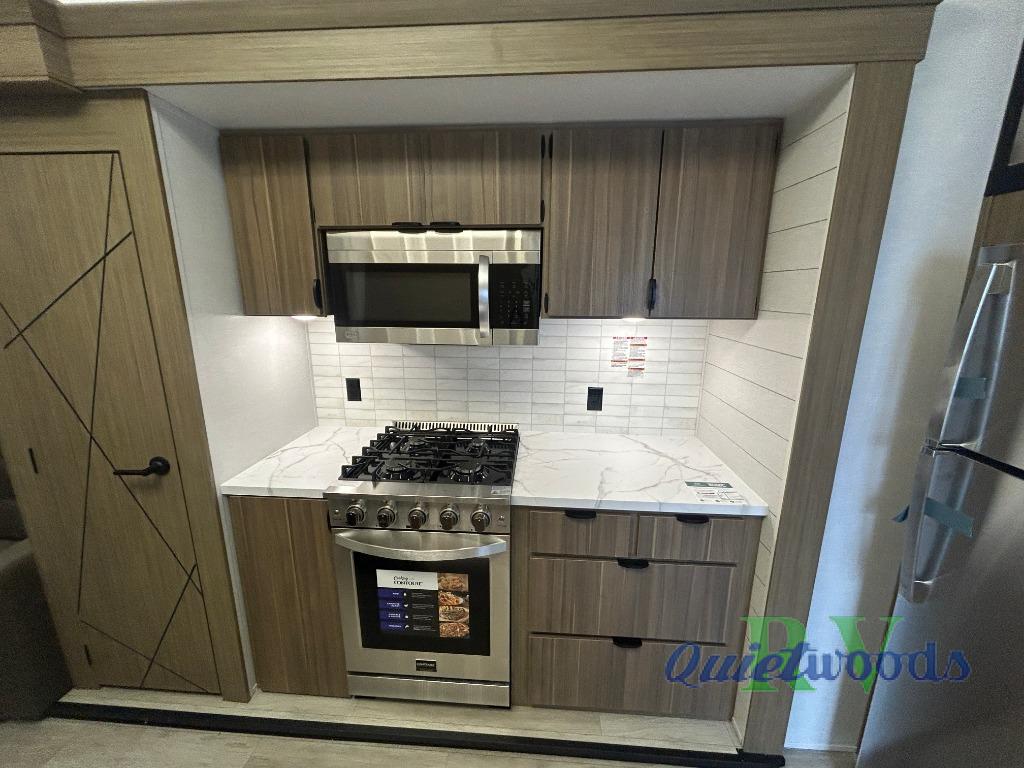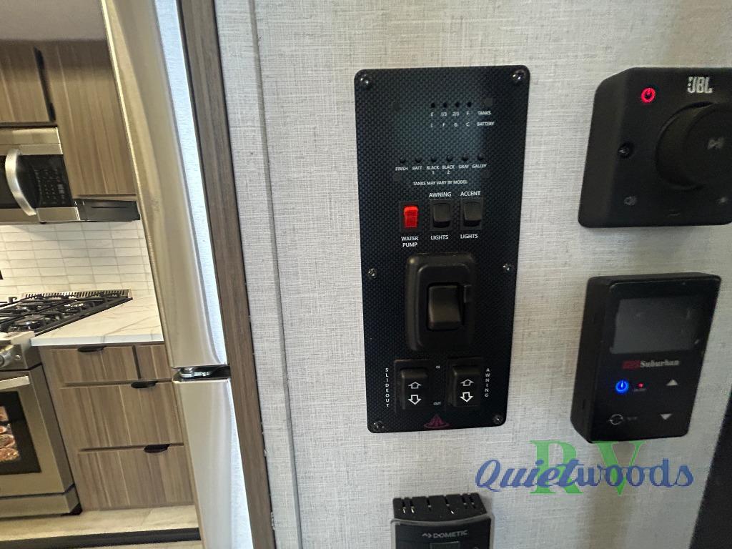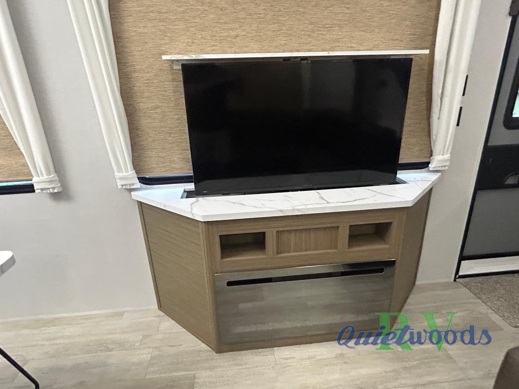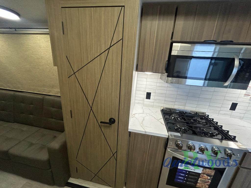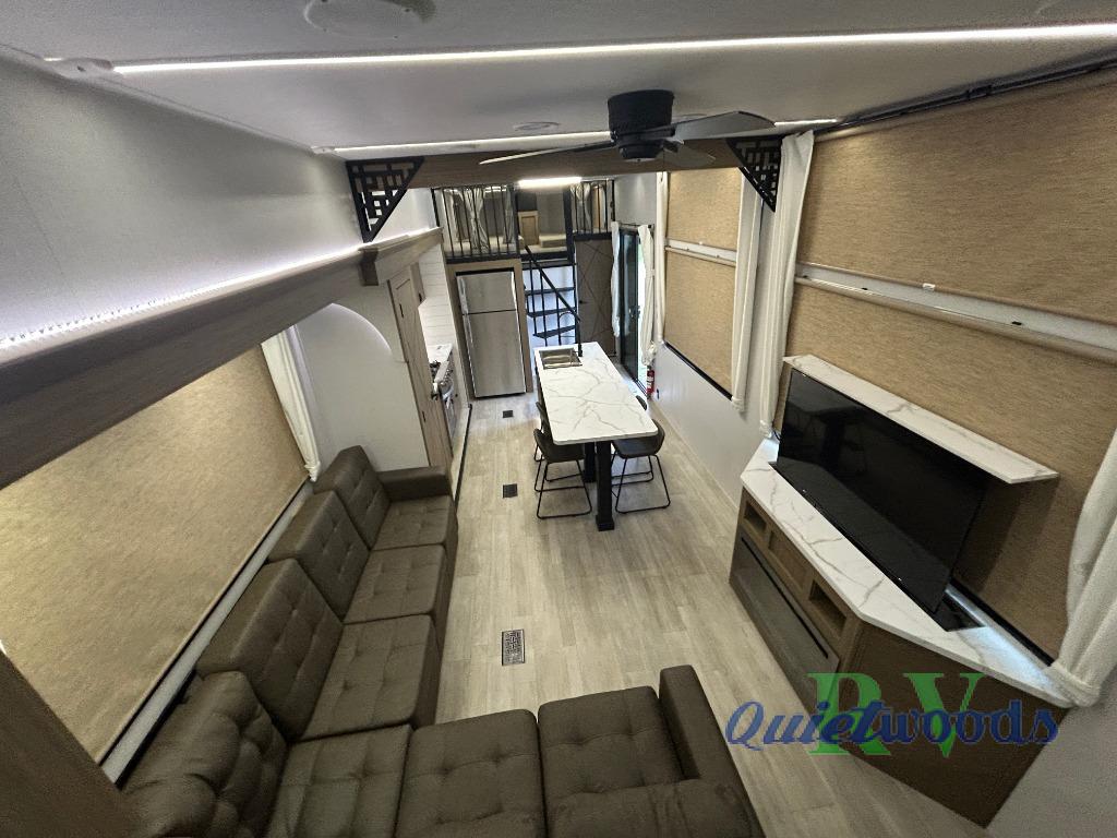 With any Salem Grand Villa destination trailer by Forest River, you can call home wherever you park it! There is a heated and enclosed Accessibelly for added protection in all seasons, LED "Blade Lighting" under the awning, Lippert On-The-Go ladder prep, plus many more exterior conveniences. Elegant curtain rods and curtains will have you feeling right at home, along with stainless steel kitchen appliances, stylish roller shades, and enhanced floating shelves for added storage. Each model includes a central vacuum with a sweep attachment to help keep your space tidy, a 60k on-demand tankless water heater for endless hot showers, a JBL 3-Zone media center, plus available options to further customize your trailer.