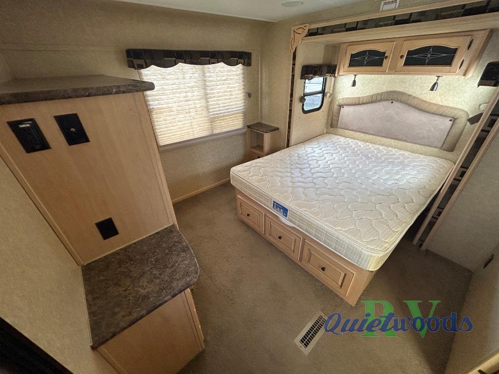 Double Slide Rockwood Signature Ultra Lite w/Rear Queen Bed Slide w/Nightstand, Walk-In Closet w/Shelves, Private Bedroom Entrance, Vanity, Garden Shower, Wardrobe, Med. Cabinet, Linen Closet, Toilet, Sofa/Booth Dinette Slide, TV Shelf, Wardrobe, Barrel Chair, Front Kitchen w/Refrigerator, Double Sink, 3 Burner Range, Overhead Cabinets, Microwave, Pantry, Shelf, Drawers and Much More. Available Options May Include: Rear Ladder, TV in Bedroom, Recliner.
