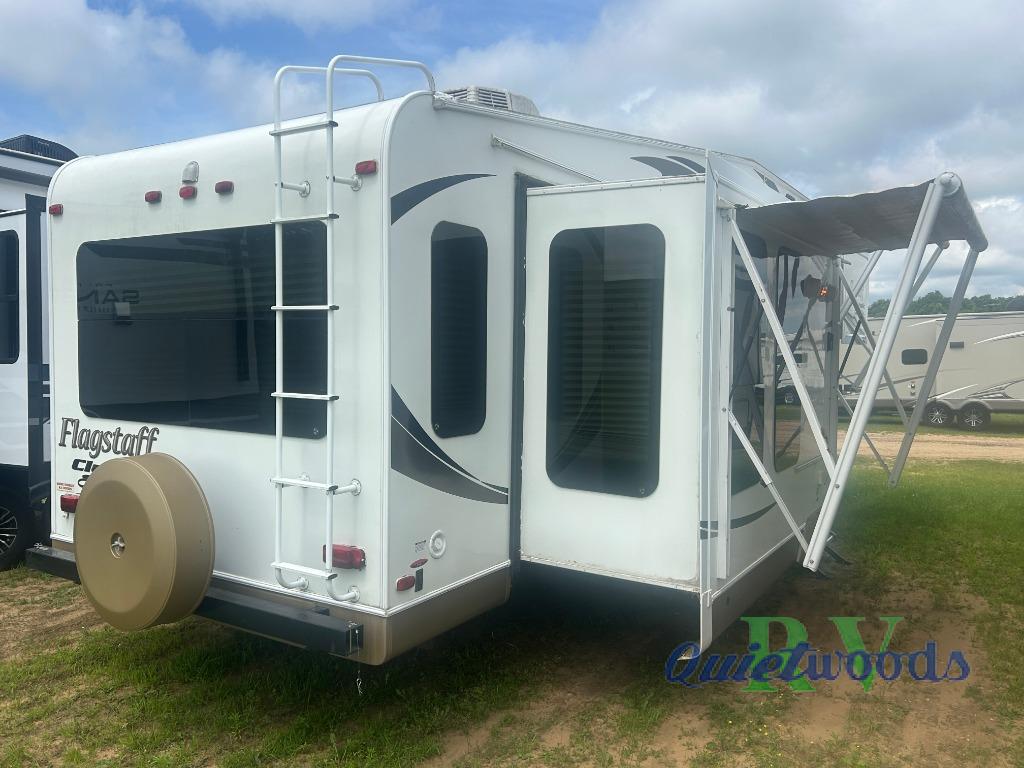 Triple Slide Flagstaff Classic Super Lite Fifth Wheel, Rear Living Area w/End Tables, 2-Lounge Chairs, Free-Standing Dinette/Entertainment Center Slide, Hide-a-Bed Sofa/Refrig./3-Burner Range/Microwave Slide, Island w/Kit. Sink, Pantry, Pantry, Linen, Step Up To Bed/Bath, Toilet, Linen, Garden Shower, Lav., Ward. Slide, Shirt Closet, Queen Bed, Nightstand, TV Backer, Overhead Cabinets Throughout & Much More. Available Options May Include: Rear Ladder, Recliners, Fireplace, 22" TV in Bedroom
