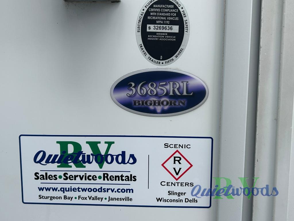 This rear living Bighorn fifth wheel by Heartland RV has got you covered with everything needed to enjoy time away from home. Model 3685RL features triple slides for added interior space, a convenient kitchen island, and a spacious master suite with king size bed!