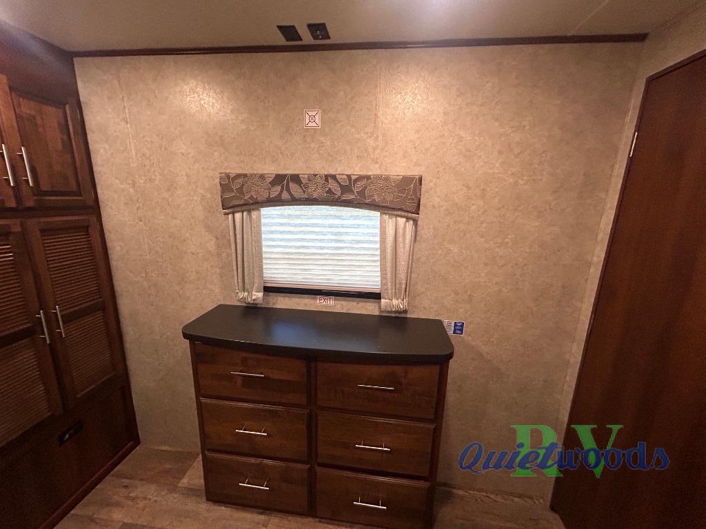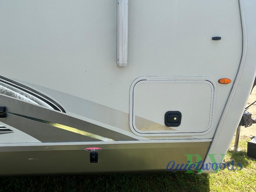 You will also find plenty of overhead cabinets throughout the travel trailer as well as notice that there is exterior storage on both sides of the trailer for your outdoor gear. Enjoy the shade of the 16' awning along the front half of the trailer and the optional 10' awning along the rear, and more!