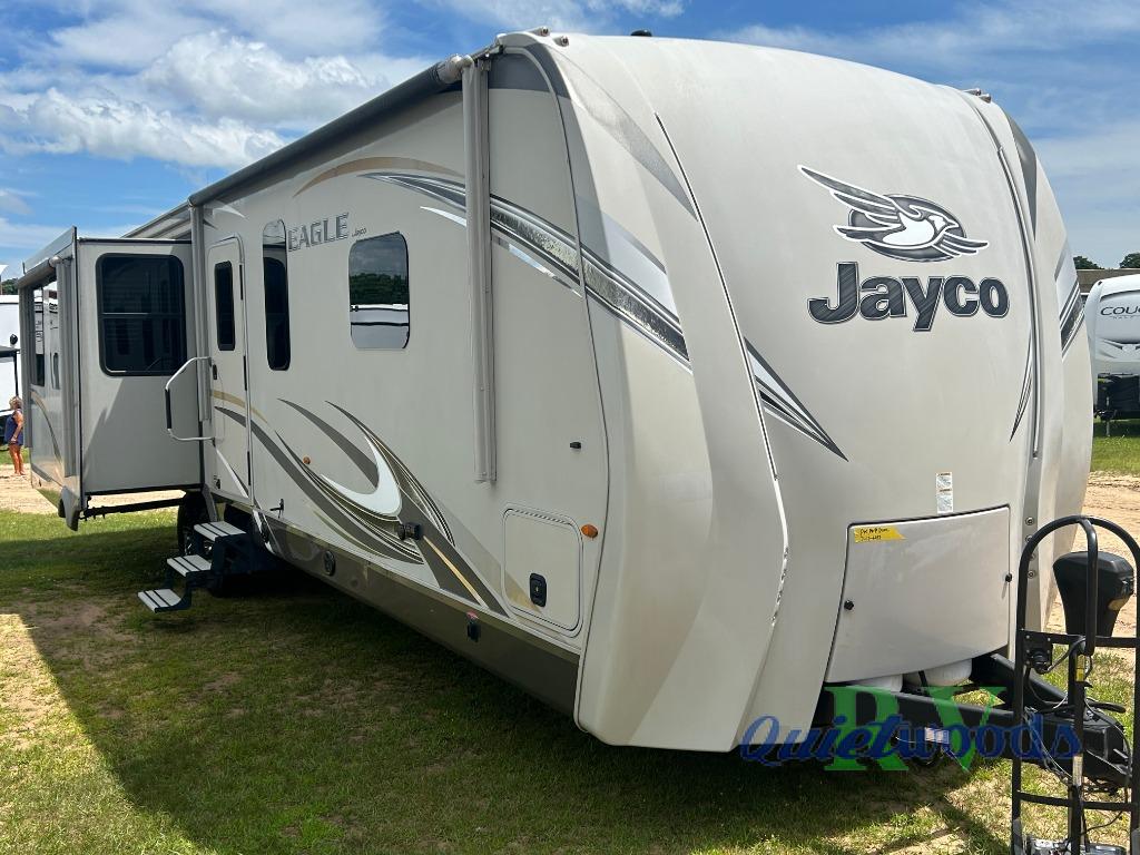 Looking for dual opposing slide outs in the living and kitchen area, a queen bed, and extra sleeping space for family and friends, look no more! This Jayco Eagle 338RETS travel trailer features all the above, plus more!
