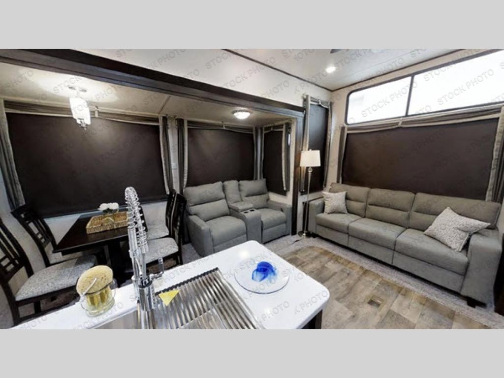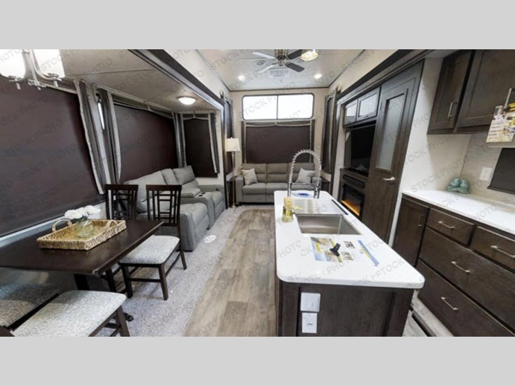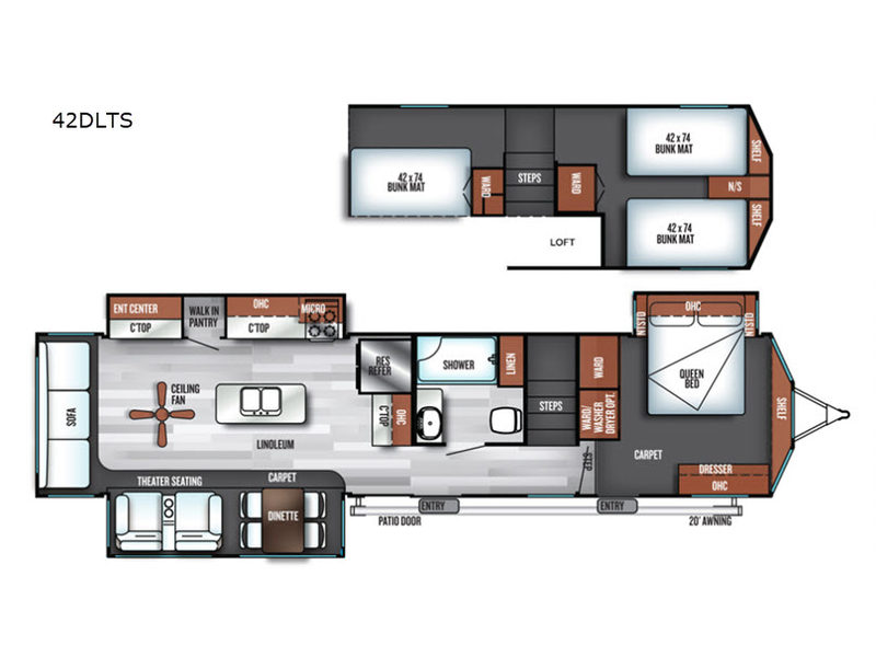 Come choose a quiet spot in the woods for your Salem Grand Villa 42DLTS destination trailer by Forest River. This model features triple slide outs, plus a loft with three bunk mats for your kids. The double entry doors makes for a smooth flow of traffic in and out. All of your tasty snacks can be kept inside the walk-in pantry. A great feature in this model is the kitchen island, it creates extra counter space to prep all your big meals and extra storage space to keep pots, pans, and serving dishes for your large group.