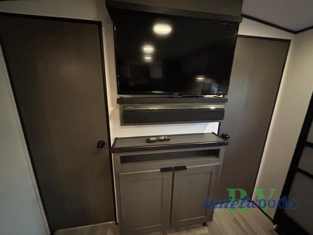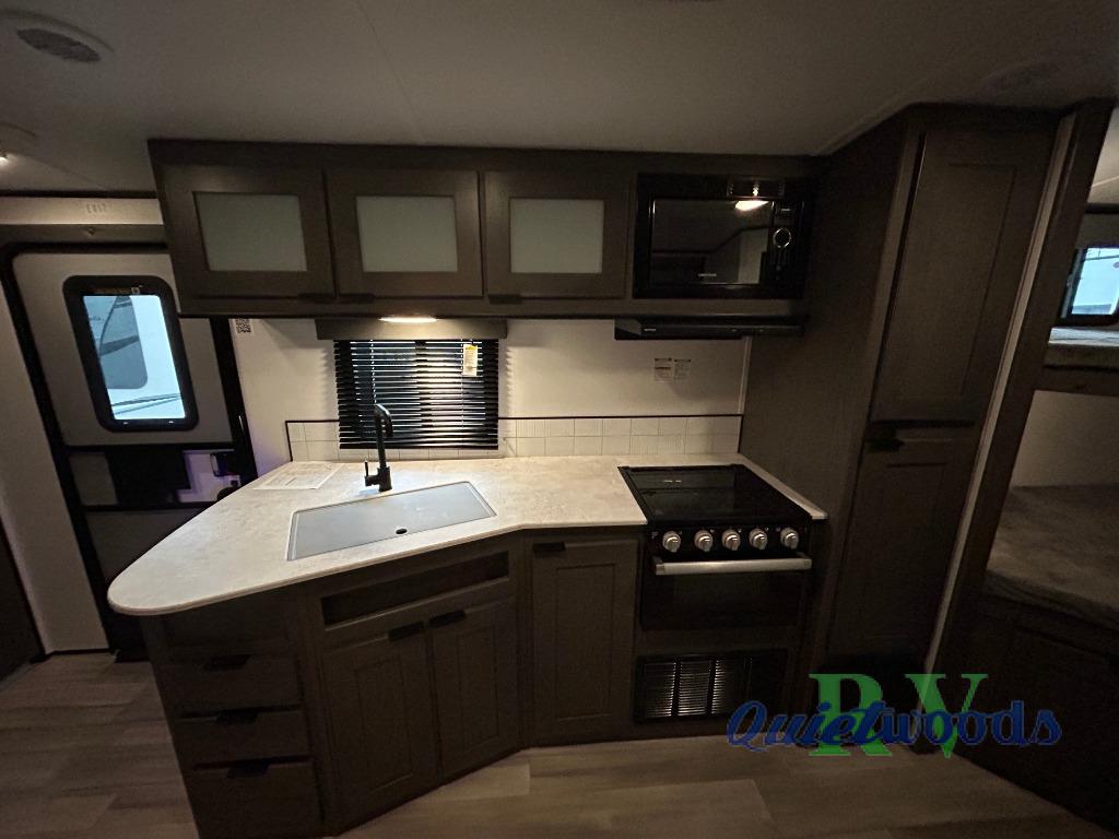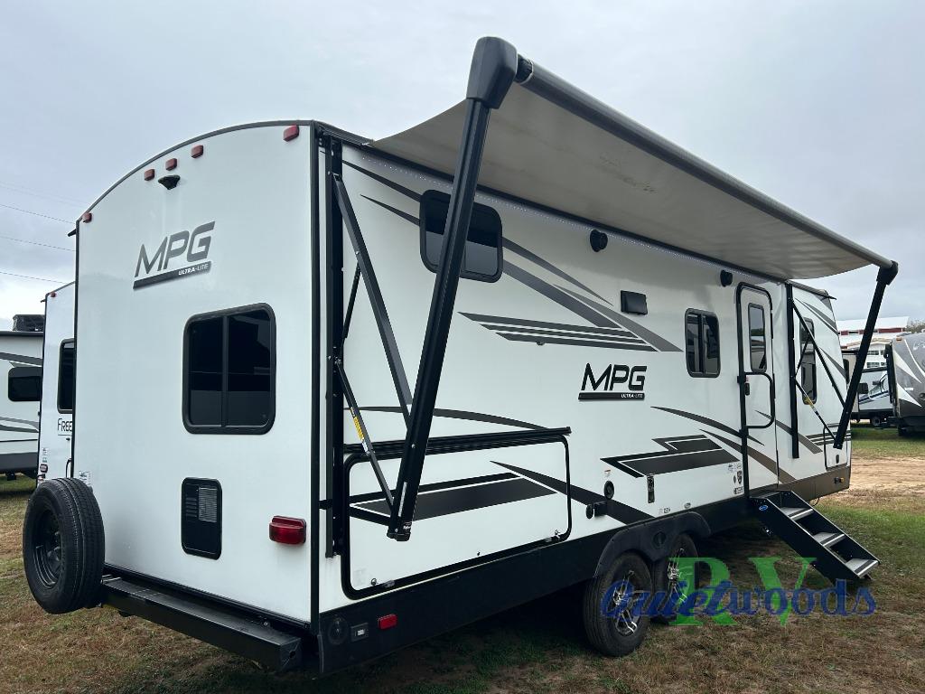 New and exciting adventures await you with this MPG travel trailer! Your children can have their own sleeping area with the double-size bunks in the back, and since these bunks are right next to the full bathroom, it won't be difficult for them to find the bathroom in the middle of the night. You can all come together in the main living area and enjoy the extra space that the large slide provides, and when you want to make it a game night, just use the U-shaped dinette. The front private bedroom has an entry door on either side of the entertainment center, and it also contains a king-size bed for the ultimate comfort. One thing that you're absolutely going to love about this trailer is the outdoor kitchen because it will allow you to keep the smells of bacon out of the interior.