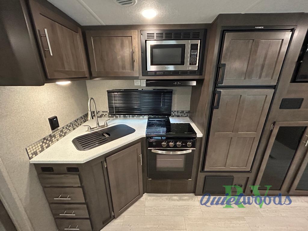 With any Flagstaff Super Lite travel trailer by Forest River you will experience a lightweight RV that is built with a 6 sided aluminum cage construction, vacuum laminated one-piece roof and walls, laminated fiberglass sidewalls, and an enclosed underbelly for four seasons of camping. The interior is just as impressive with a Shower Miser water saver system, hardwood cabinet doors and drawers, undermount double bowl kitchen sink with a residential style faucet, ceiling LED 12 volt interior lighting, and a monitor panel switch station with a OneControl app. Make your selection today!