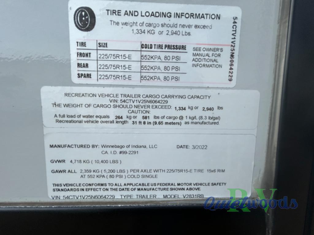 Used 2022 Winnebago Industries Towables Voyage 2831RB